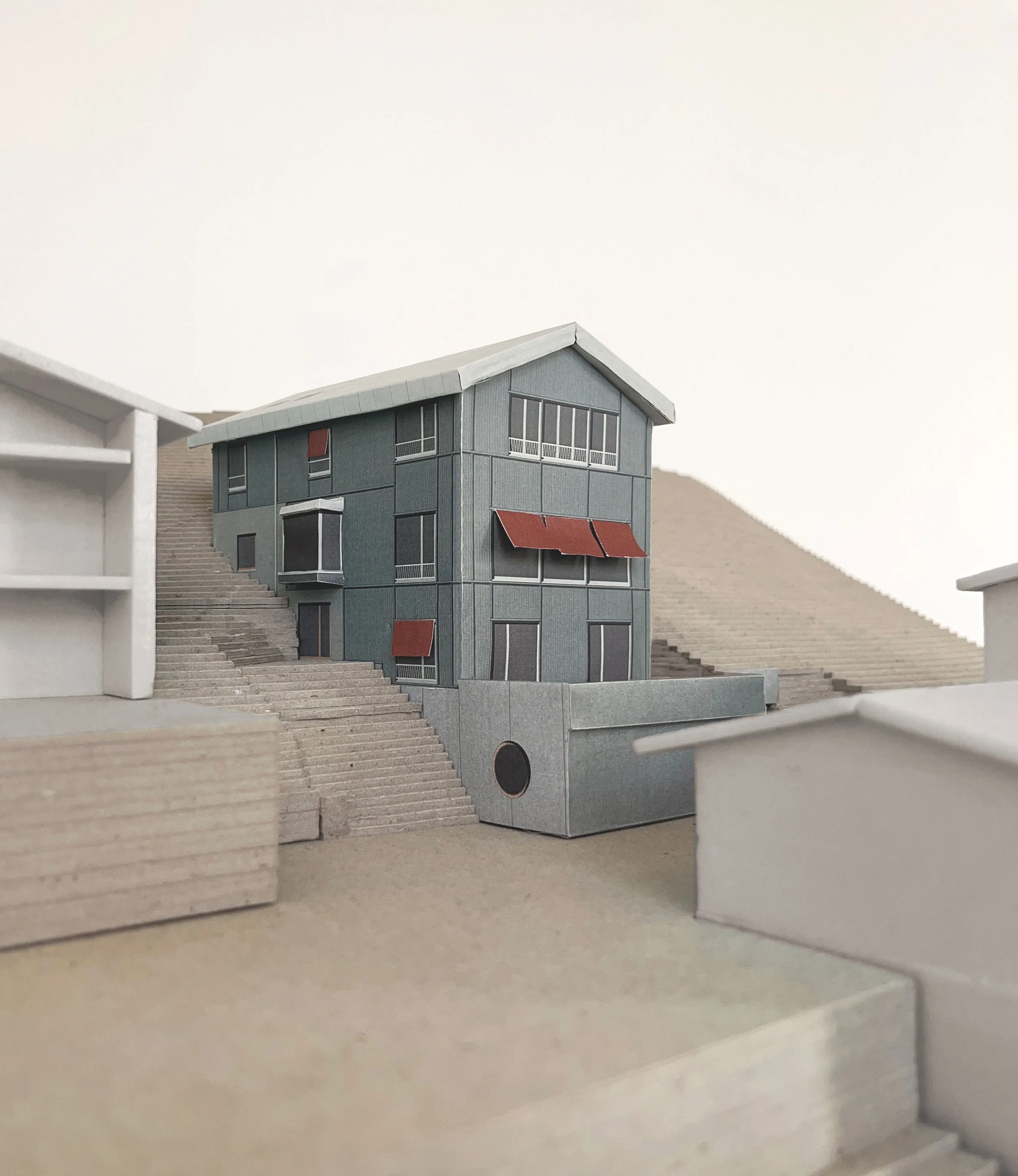 Für unseren Vorschlag, die von Architekt Josef Elfinger an der Lindberghstrasse in Ingolstadt errichtete Wohnsiedlung aus den 1950er Jahren behutsam durch Aufstockung und Neubauten zu ergänzen und dabei den Duktus beizubehalten, belegen wir beim eingeladenen Wettbewerb den 3. Platz.